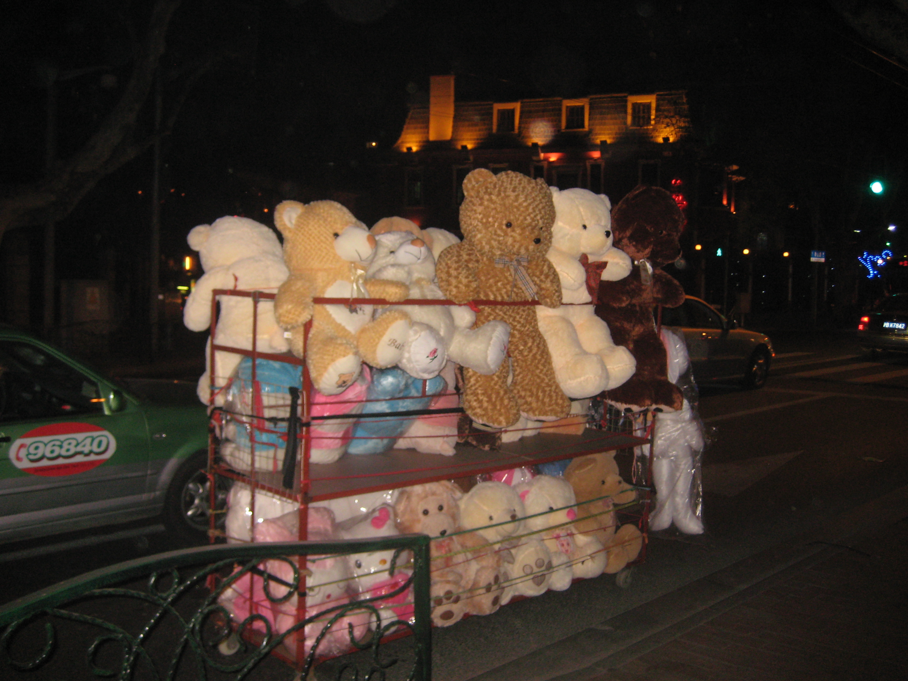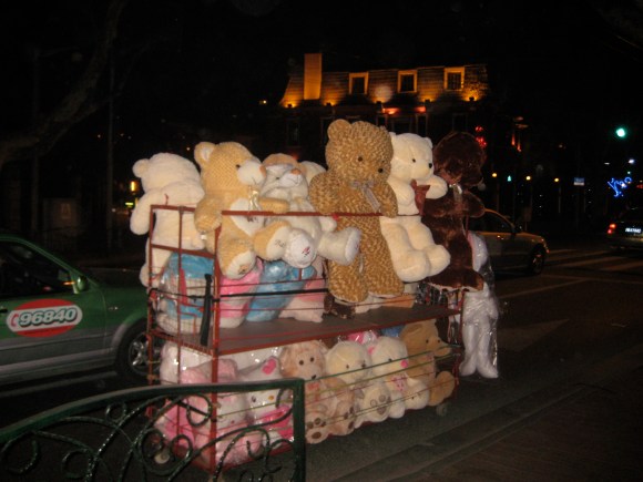 Every few weeks I see a large kart filled with giant plush toys pulled through the streets of Shanghai. I realize many foreigners send these types of picture back to their friends at home, but even though the picture is not that original I still get a kick out of it.